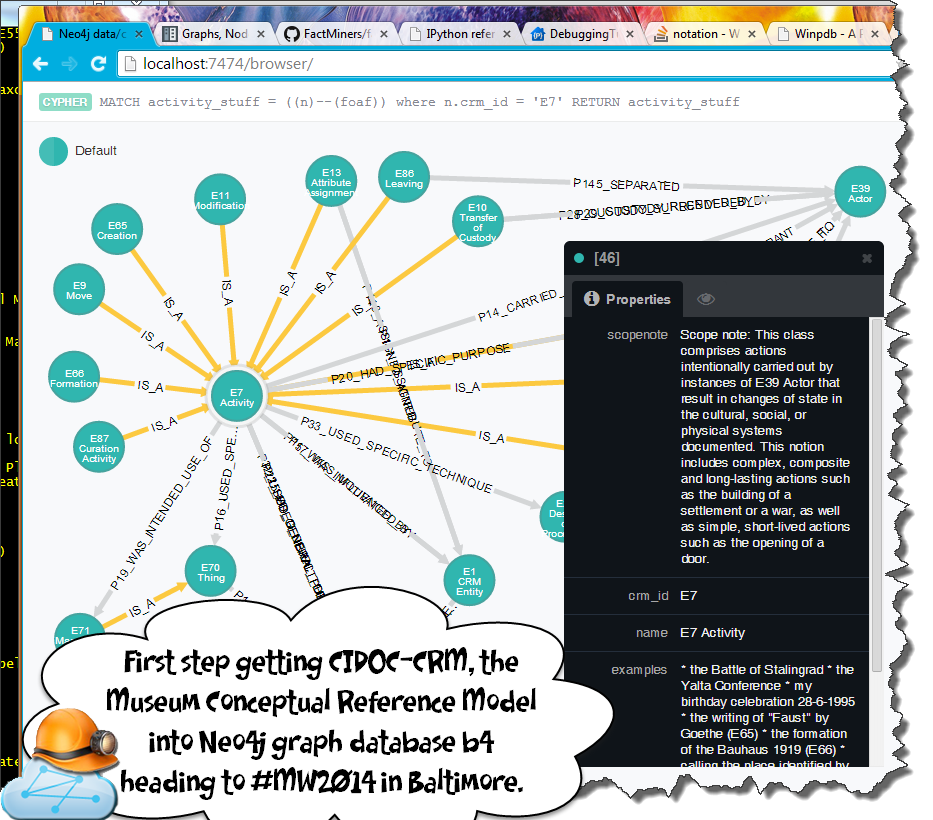 For step one of getting the CRM into Neo4j, this is literally my first Python program. Judge only that it worked well enough to parse the ICOM CIDOC CRM (Conceptual Reference Model) text document and get it into Neo4j where this will serve as a reference model for FactMiners' metamodel construction.