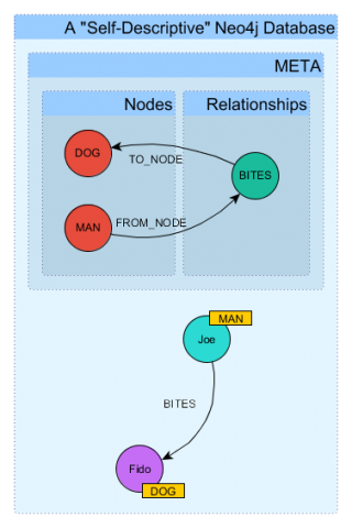 We can bring this kind of leverage to graph databases, and I hope Neo4j will be the pioneer leader in this, by coming up with a community standard for an embedded metamodel subgraph feature. By adopting the general embedded metamodel subgraph pattern and defining a core structure for the general semantics of a metamodel in a graph database, we would then have a common mechanism for 3rd party product/service developers to hang their tool-specific "decorations"/hints/config-specs/whatever. With some kind of lightweight mechanism for registering a property namespace in the META partition (or whatever this subgraph is called), 3rd party devs would be able to work together more efficiently to provide interoperability and other pipeline-type features that are all good for the Neo4j ecosystem.